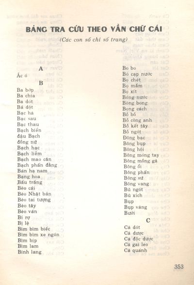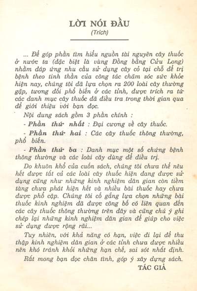 - Phần thứ ba: Danh mục một số chứng bệnh thông thường và các loài cây dùng để điều trị.