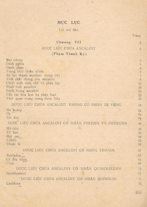 - Chương 7: Dược liệu chứa ancaloit
