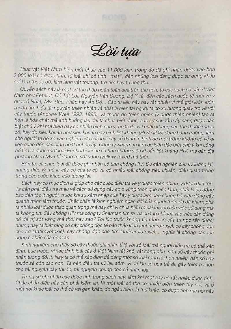 Sách này có mục đích là giúp cho các cuộc điều tra về y dược thiên nhiên, y dược dân tộc. Ta cần phải điều tra mau về cách sử dụng cây cỏ ở vùng thôn quê hẻo lánh, nhất là do đồng bào dân tộc ít người, trước khi sự xâm nhập Tây y dược làm cho dân chúng bỏ việc dùng cây quanh mình làm thuốc. Chắc chắn là kinh nghiệm ngàn đời của người thôn dã đã khám phá ra nhiều loại dược thảo quan trọng mà nay chỉ vì chưa hiểu rõ cái tại sao của việc sử dụng mà ta không tin. Cây chống HIV mà công ty Sharman tìm ra, há chẳng chỉ dựa vào việc dân dùng nó để trị sốt vàng mà thôi hay sao? Tôi lúc trước không tin rằng có cây trị nọc rắn được nhưng nay ta biết rằng có cây chống độc tế bào thần kinh (antineurotoxic), có cây chống độc cho cơ (antimyotoxic), cây chống độc cho tim ....., nghĩa là chống các tác động cơ bản nọc rắn.