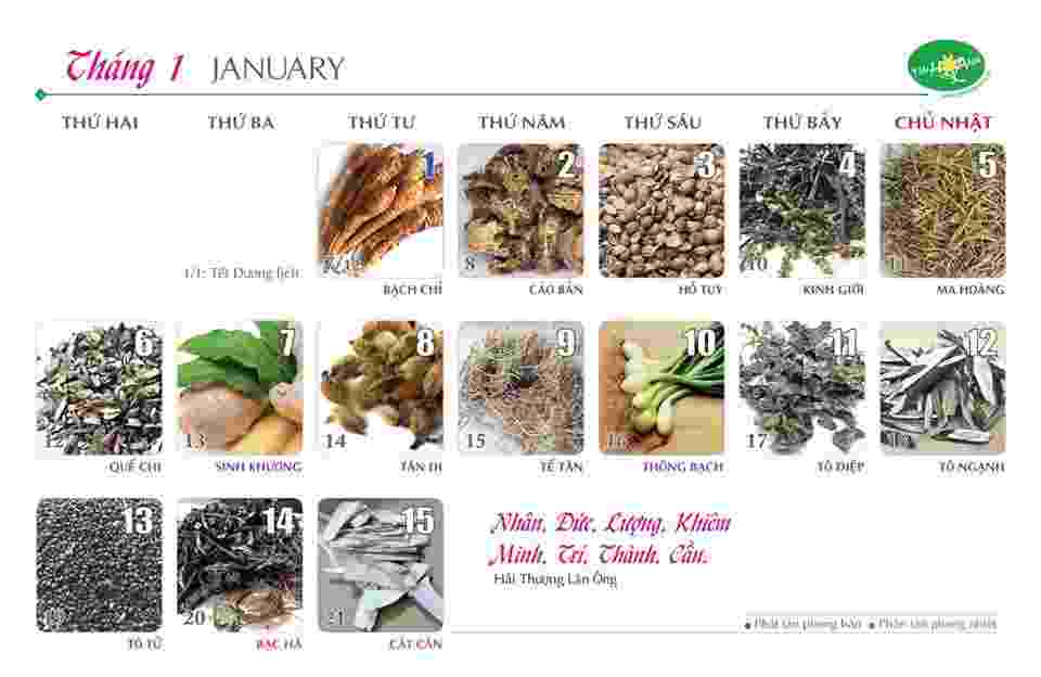 Lần đầu tiên các vị thuốc Đông y xuất hiện trên lịch để bàn. Bộ lích này được thiết kế đa tác dụng: