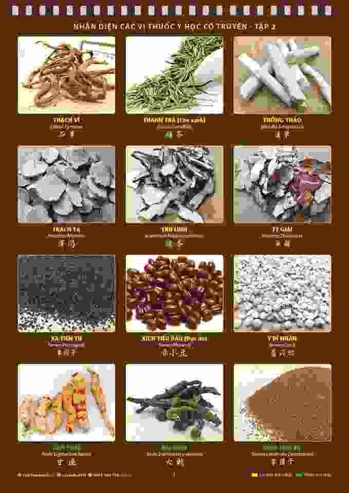 Tăng thêm sự sinh động và làm nổi bật phong cách trong mỗi phòng khám, phòng làm việc của các Lương y, Bác sỹ YHCT. Mỗi vị thuốc được trình bày 1 ảnh màu minh họa rõ nét, dễ nhận biết cùng tên tiếng Việt, tên Latinh (theo chuẩn quốc tế) và chữ Hán phồn thể do TTND. Lương y Trần Văn Quảng viết tay bằng bút lông.