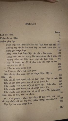 - Phần I: Dược liệu: giới thiệu các thông tin của các loài thực vật như tên khoa học. tên gọi khác, đặc điểm của cây, công dụng, bài thuốc,...