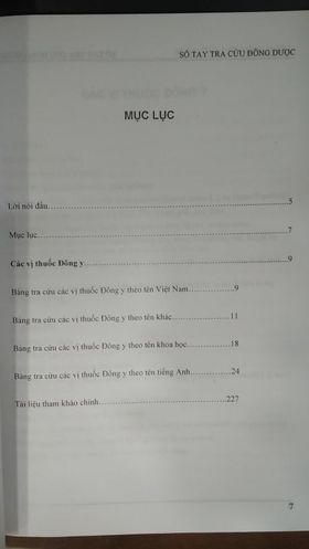 Cuốn sách gồn 538 vị thuốc Đông y. Mỗi vị thuốc đều có tên tiếng Việt, tên khác, tên koa học và tên tiếng Anh.