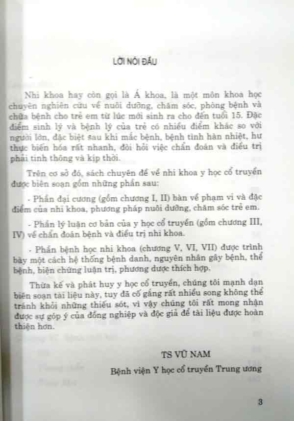 - Phần lý luận cơ bản của y học cổ truyền ( gồm chương III, IV ) về chuẩn đoán bệnh và điều trị nhi khoa.