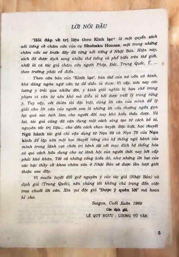 “Hỏi đáp về trị liệu theo Kinh Lạc” là một quyển sách nổi tiếng về châm cứu của cụ Shohaku Honma, một trong những châm cứu sư nổi tiếng trước đây của Nhật Bản. Sách gồm 2 quyển: