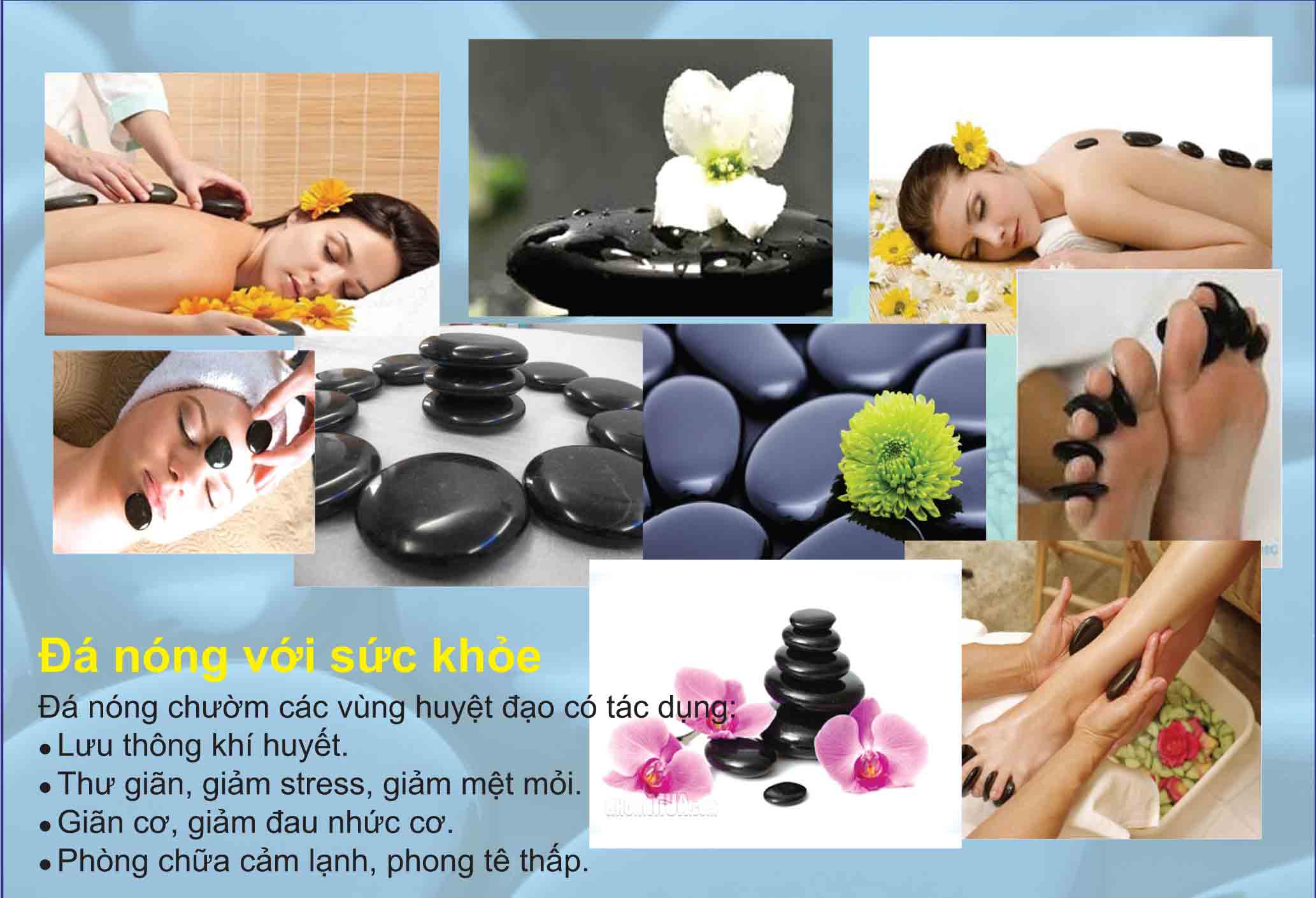 - Nguồn năng lượng trong đá nóng khi kết hợp với tinh dầu trị liệu còn giúp chữa một số bệnh như viêm thận, thoái hóa cột sống, xóa nếp nhăn trên mặt, làm tiêu mỡ và thon gọn cơ thể...